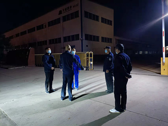 按照開發(fā)區(qū)疫情防控會議精神,為減少人員流動,保障公司員工安全和平穩(wěn)生產(chǎn)秩序,公司第一時間啟動疫情防控應(yīng)急預(yù)案,加強了疫情期間閉環(huán)管理。二、三分廠和道恩藥業(yè)共有值守干部員工540名,除做好日常防護工作外,還要求各車間、部門管好所屬員工,任何人禁止外出。閉環(huán)管理期間,加重了安監(jiān)部人員檢查和出入登記工作,也加重了廠區(qū)內(nèi)安全巡檢工作,尤其是夜間人員休息時候的安全保障工作。
