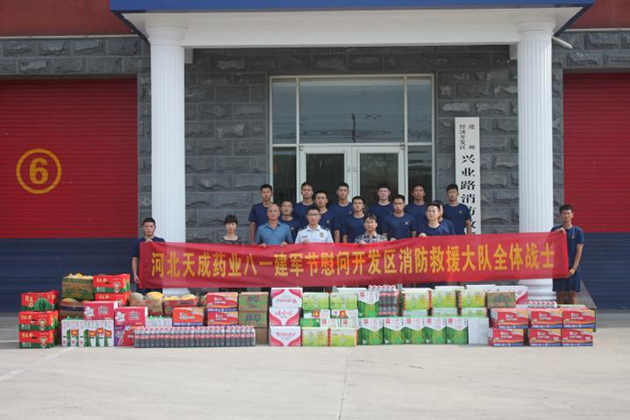 在八一建軍節(jié)來(lái)臨之際,7月31日河北天成藥業(yè)總經(jīng)理孫元清、常務(wù)副總經(jīng)理王顥等領(lǐng)導(dǎo)帶著滿滿的關(guān)愛(ài)與敬意,走進(jìn)了開(kāi)發(fā)區(qū)消防救援大隊(duì),為全體戰(zhàn)士們送上了溫暖的慰問(wèn)和真摯的祝福。