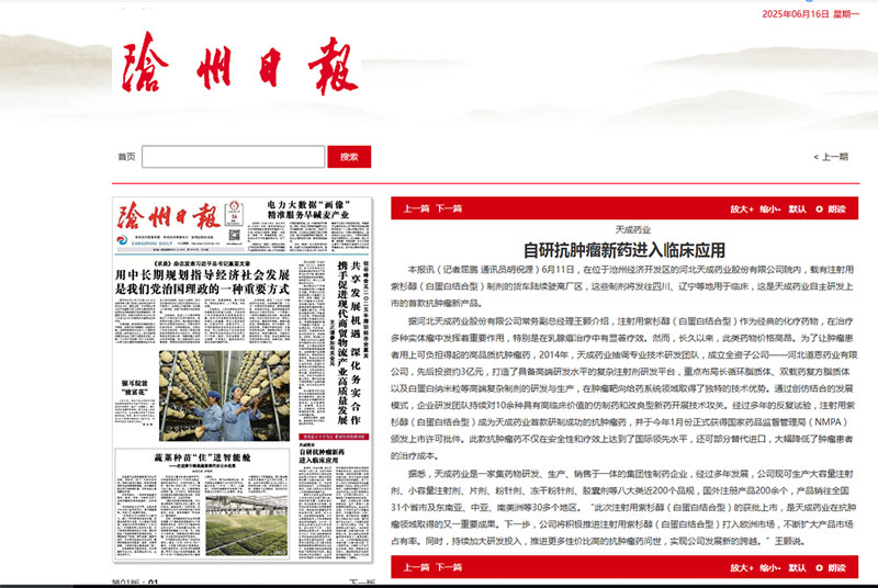 據(jù)河北天成藥業(yè)股份有限公司常務(wù)副總經(jīng)理王顥介紹,注射用紫杉醇(白蛋白結(jié)合型)作為經(jīng)典的化療藥物,在治療多種實體瘤中發(fā)揮著重要作用,特別是在乳腺癌治療中有顯著療效。然而,長久以來,此類藥物價格高昂。為了讓腫瘤患者用上可負(fù)擔(dān)得起的高品質(zhì)抗腫瘤藥,2014年,天成藥業(yè)抽調(diào)專業(yè)技術(shù)研發(fā)團隊,成立全資子公司——河北道恩藥業(yè)有限公司,先后投資約3億元,打造了具備高端研發(fā)水平的復(fù)雜注射劑研發(fā)平臺,重點布局長循環(huán)脂質(zhì)體、雙載藥復(fù)方脂質(zhì)體以及白蛋白納米粒等高端復(fù)雜制劑的研發(fā)與生產(chǎn),在腫瘤靶向給藥系統(tǒng)領(lǐng)域取得了獨特的技術(shù)優(yōu)勢。通過創(chuàng)仿結(jié)合的發(fā)展模式,企業(yè)研發(fā)團隊持續(xù)對10余種具有高臨床價值的仿制藥和改良型新藥開展技術(shù)攻關(guān)。經(jīng)過多年的反復(fù)試驗,注射用紫杉醇(白蛋白結(jié)合型)成為天成藥業(yè)首款研制成功的抗腫瘤藥,并于今年1月份正式獲得國家藥品監(jiān)督管理局(NMPA)頒發(fā)上市許可批件。此款抗腫瘤藥不僅在安全性和療效上達(dá)到了國際領(lǐng)先水平,還可部分替代進(jìn)口,大幅降低了腫瘤患者的治療成本。