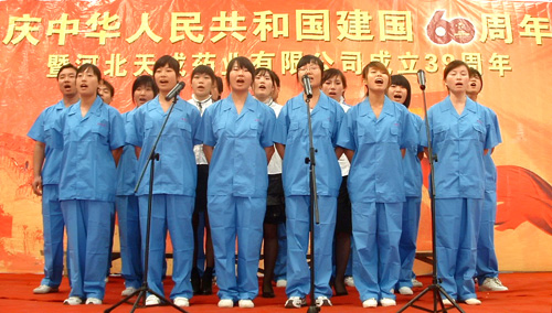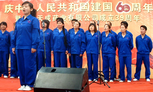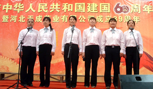 2009年9月29日是我公司建廠39周年改制11周年的日子,又恰逢新中國成立60周年,和著全國人民大慶的節(jié)拍,我公司于2009年9月30日舉行了隆重的慶典活動。大會由公司副總王顥主持,公司副總田長友在會上做了2009年1-9月份工作匯報,副總徐福河宣讀了2009年度工資調整方案,之后公司董事長兼總經理王振剛做了關于企業(yè)文化的重要報告。領導講話結束后,舉行了“唱紅歌”大合唱歌詠比賽,全公司共有十九個代表隊參加了比賽。最后,在全體干部員工“歌唱祖國”的歌聲中,慶典活動圓滿結束。該活動極大地振奮了干部員工的精神,弘揚了企業(yè)文化,為公司今后的發(fā)展指明了方向。