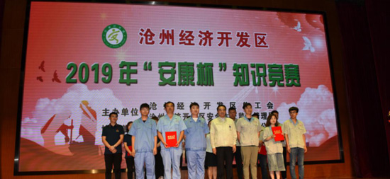 7月16日,由滄州經(jīng)濟(jì)開(kāi)發(fā)區(qū)總工會(huì)、滄州經(jīng)濟(jì)開(kāi)發(fā)區(qū)安全生產(chǎn)監(jiān)督管理局主辦,北京現(xiàn)代汽車有限公司滄州分公司協(xié)辦,滄州經(jīng)濟(jì)開(kāi)發(fā)區(qū)2019年“安康杯”知識(shí)競(jìng)賽在北京現(xiàn)代滄州分公司舉行。我公司綜合部部長(zhǎng)呂斌攜道恩藥業(yè)安全環(huán)保部李世杰、綜合部劉立紅參加此次比賽。比賽分為必答題、搶答題、風(fēng)險(xiǎn)題三個(gè)環(huán)節(jié),比賽過(guò)程中,我公司三位選手沉著冷靜、對(duì)答如流,經(jīng)過(guò)激烈的角逐,取得二等獎(jiǎng)的驕人成績(jī)。