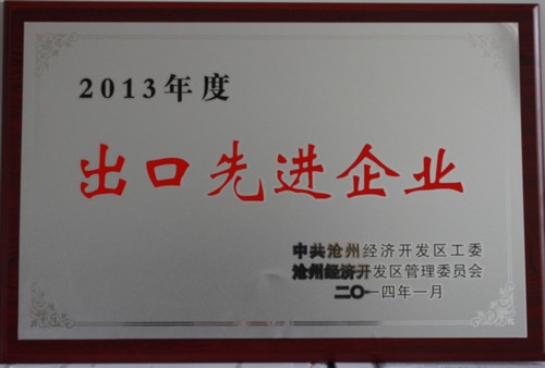 2014年榮獲“2013年度出口先進(jìn)企業(yè)” 榮譽(yù)稱號