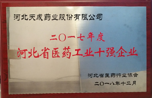 公司獲得2017年河北省醫(yī)藥工業(yè)十強企業(yè)