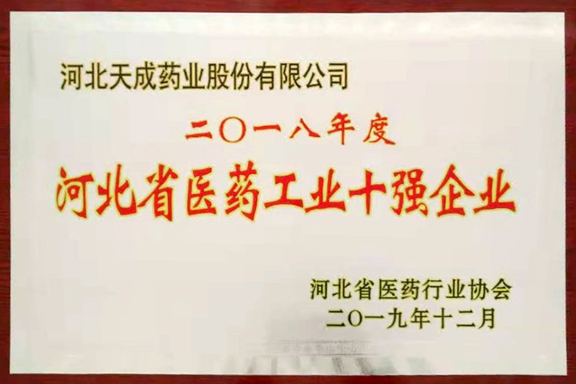 河北省醫(yī)藥工業(yè)十強企業(yè)